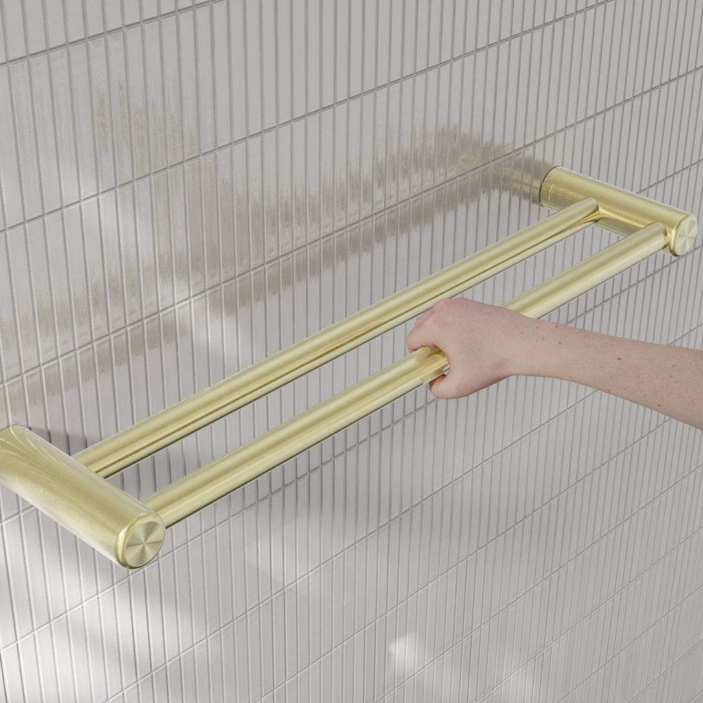 Nero Mecca Care 25mm Double Towel Grab Rail 600mm Brushed Gold