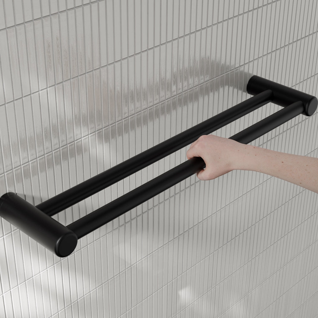 Nero Mecca Care 25mm Double Towel Grab Rail 600mm Matte Black