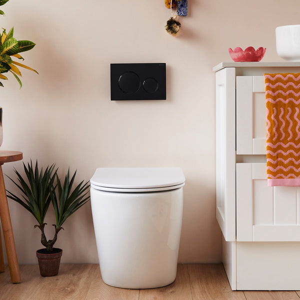 Back to wall toilet pans are sometimes referred to as ‘wall-faced toilet pans or ‘in-wall toilet suites’. They’re a popular choice with renovators because they give the bathroom a modern look and feel.