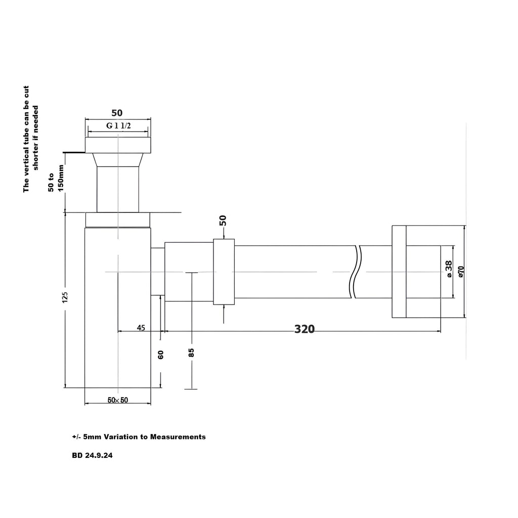 BD Brushed Nickel Bottle Trap 40mm x 40mm DWV Socket