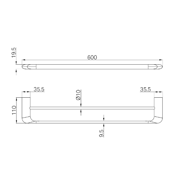 Elgin 600mm Double Towel Rail - Gunmetal Grey