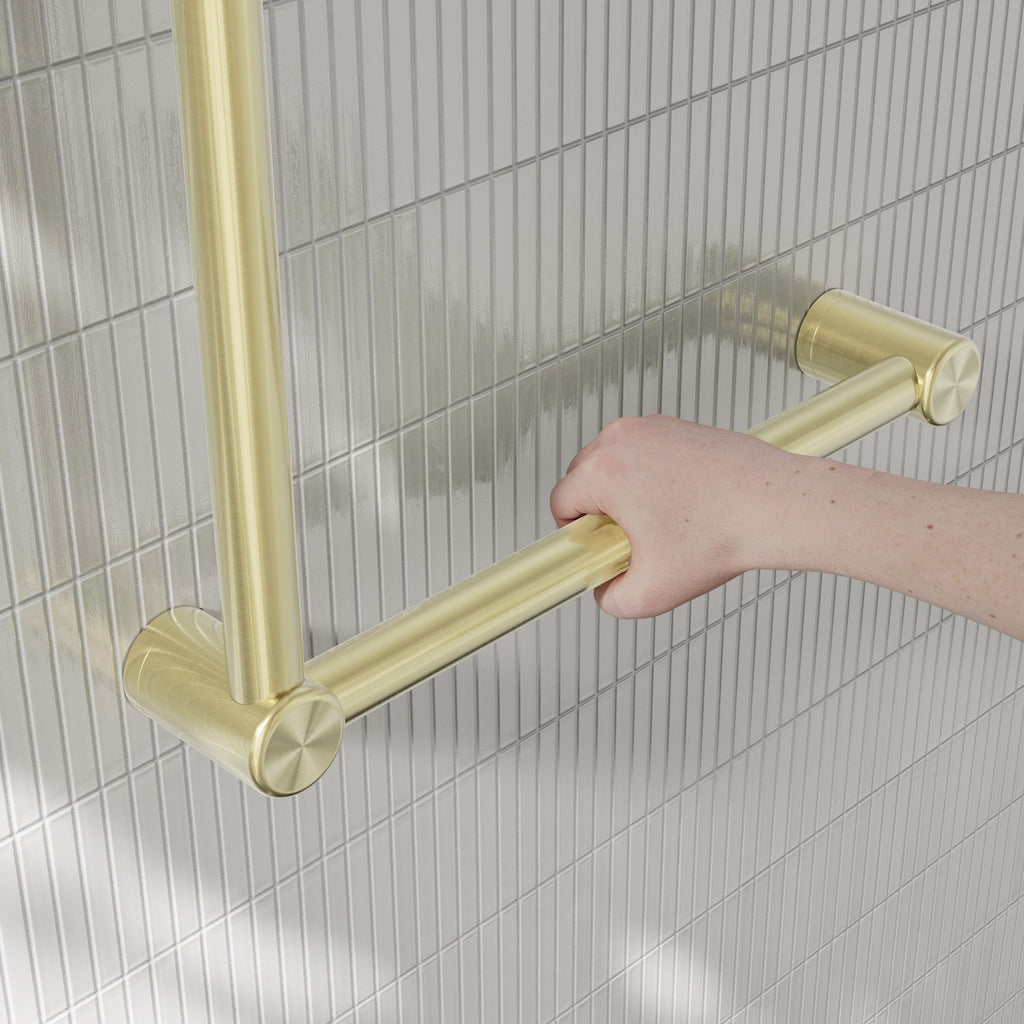 Nero Mecca Care 32mm Ambulant Toilet Grab Rail 90 Degree 450X450mm Brushed Gold