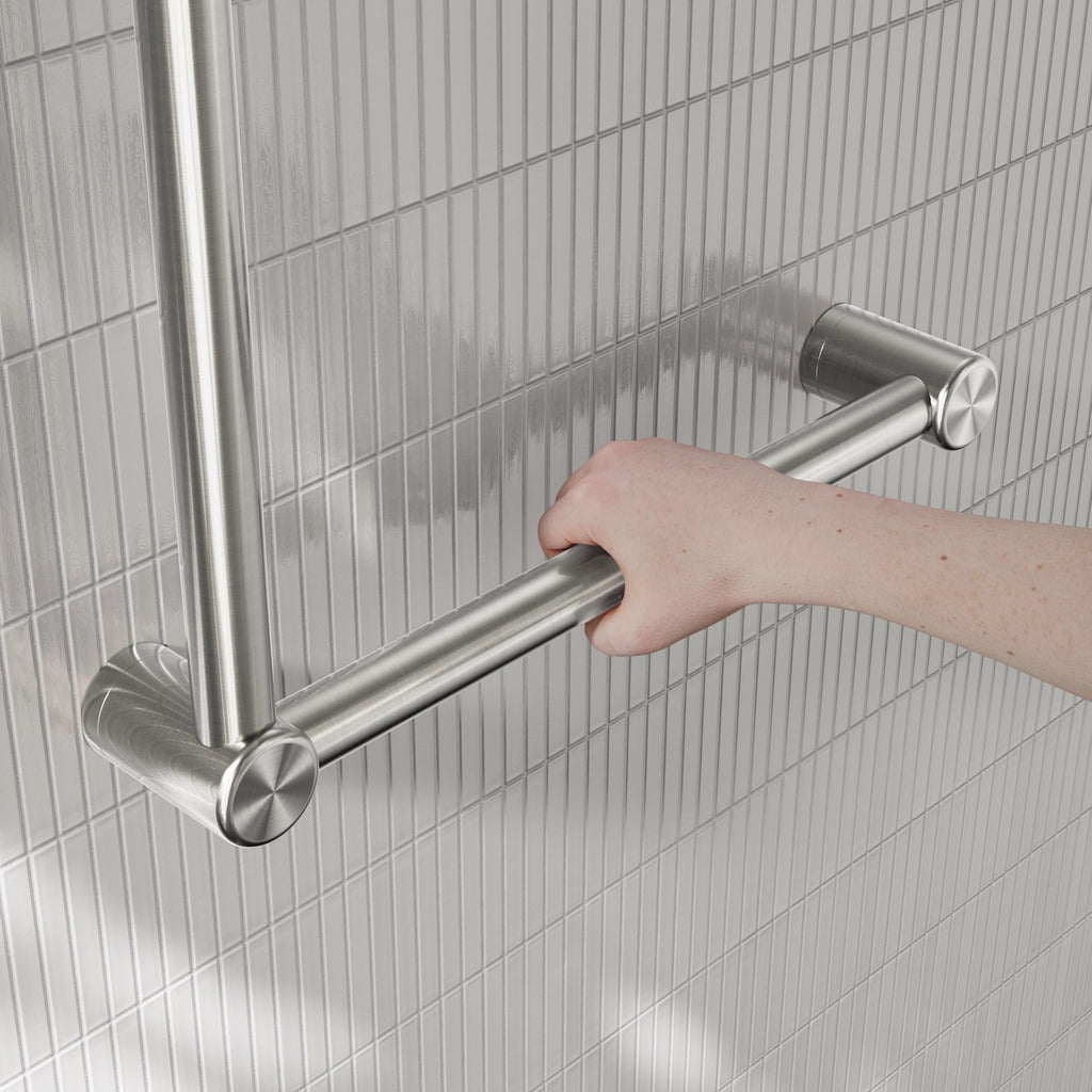 Nero Mecca Care 32mm Ambulant Toilet Grab Rail 90 Degree 450X450mm Brushed Nickel