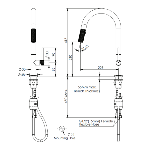 Greens Tesora Pull Down Sink Mixer, Brushed Brass