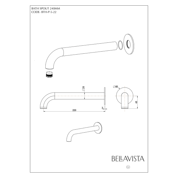 Bella Vista Mica Curved Bath Spout - Brushed Nickel (Multiple Sizes)