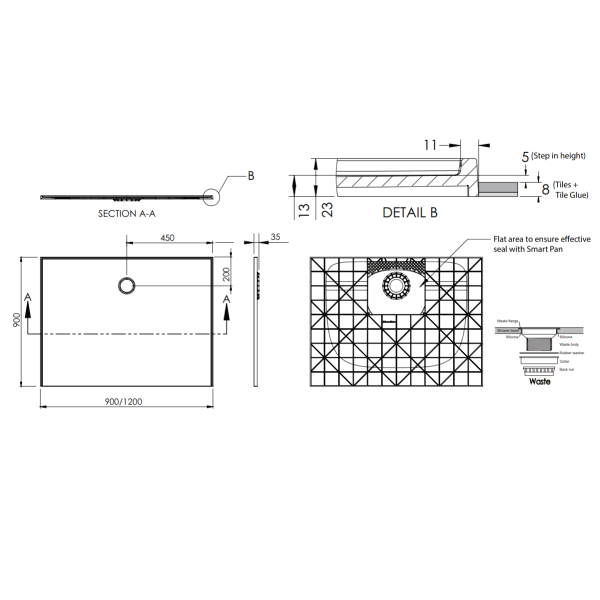 BPA Super Slim SMC Shower Base 900x900 / 1200x900