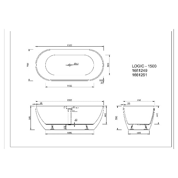 Essence Logic 1500mm Matte White With Overflow FreeStanding Oval Bath