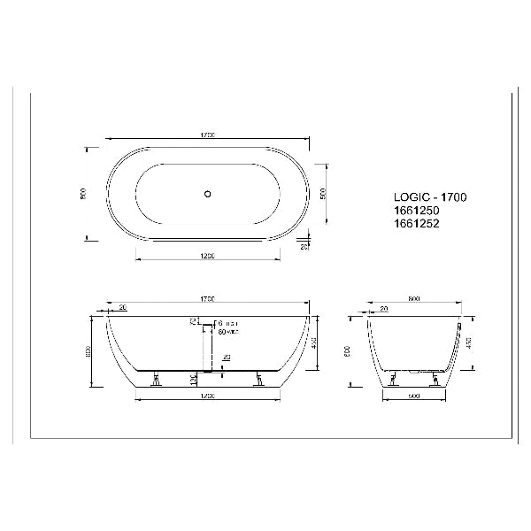 Essence Logic 1700mm Matte White With Overflow FreeStanding Oval Bath
