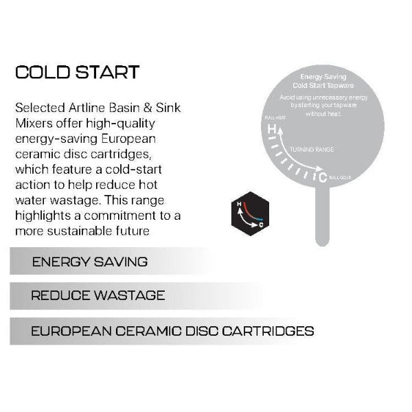 Franz Artline Care Chrome Basin Mixer Cold Start Curved Spout 4 Star / 6.5 LPM Lead Free