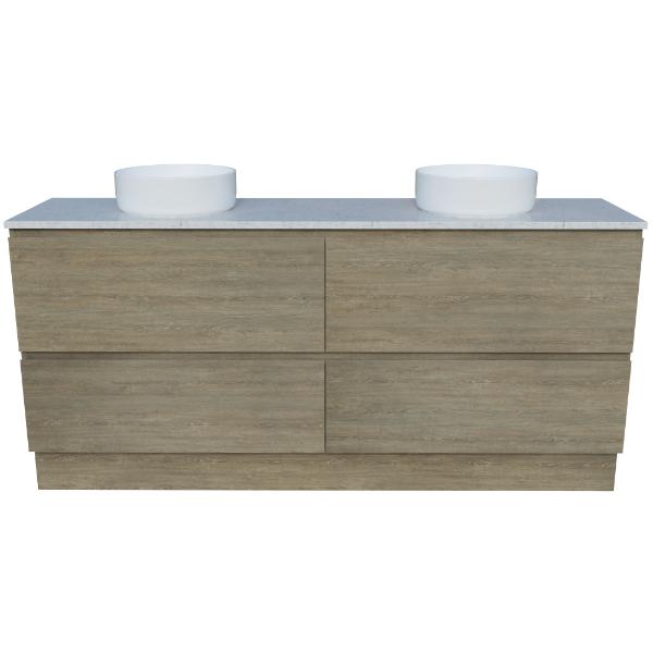 Nevada Plus All-Drawer 1500mm Floor Standing Vanity, Above or Under Counter Basin, Double Bowl
