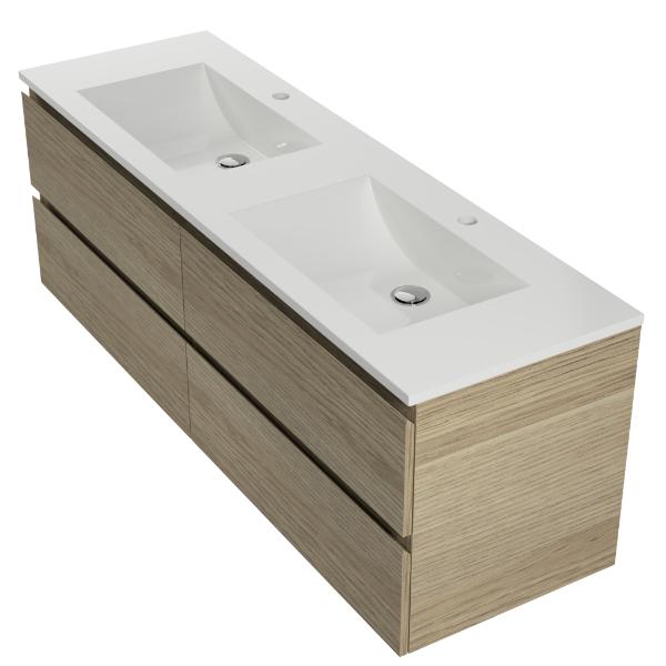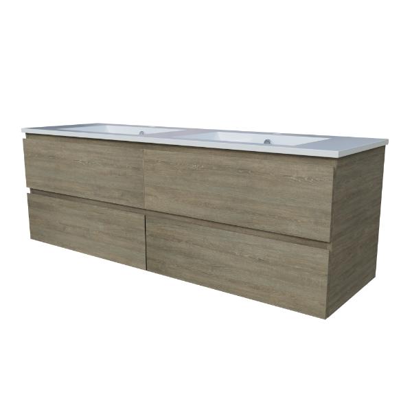 Nevada Plus All-Drawer 1500mm Wall Hung Vanity with Moulded Top, Double Bowl