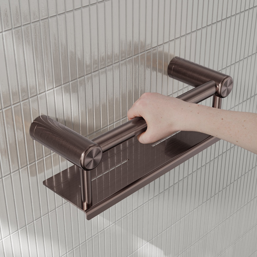 Nero Mecca Care 25mm Grab Rail With Shelf 300mm Brushed Bronze