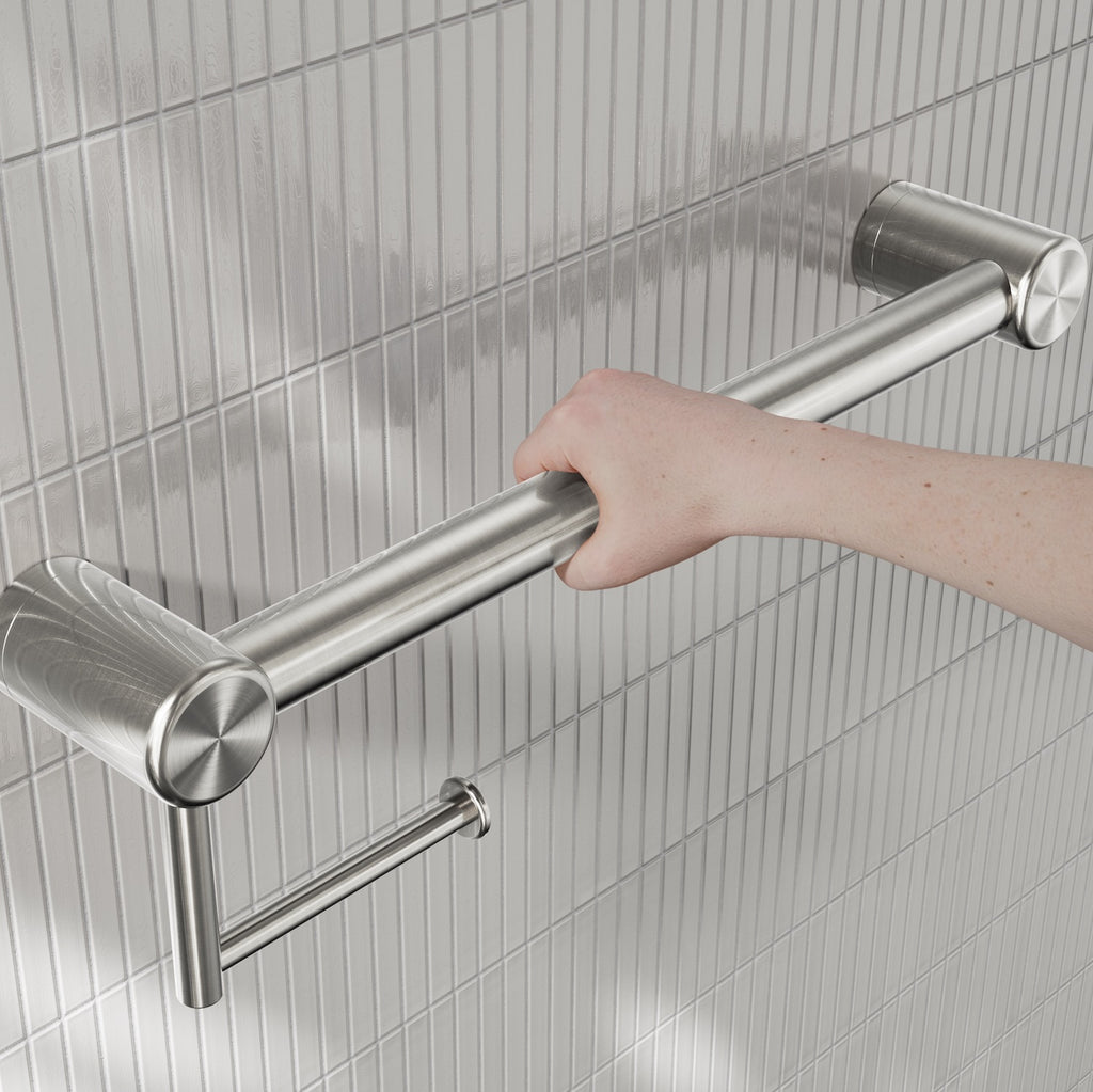 Nero Mecca Care 32mm Grab Rail With Toilet Roll Holder 450mm Brushed Nickel