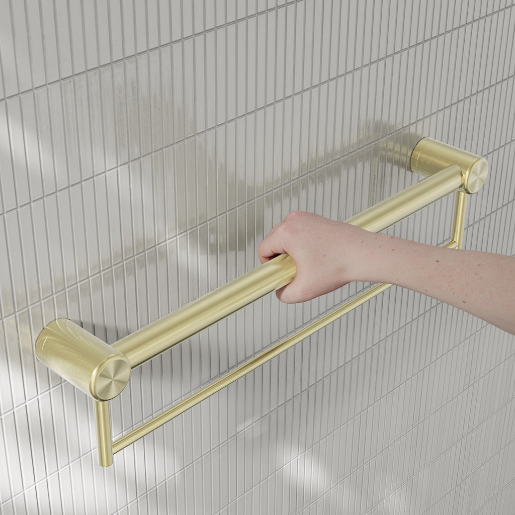 Nero Mecca Care 32mm Grab Rail With Towel Holder 600mm Brushed Gold