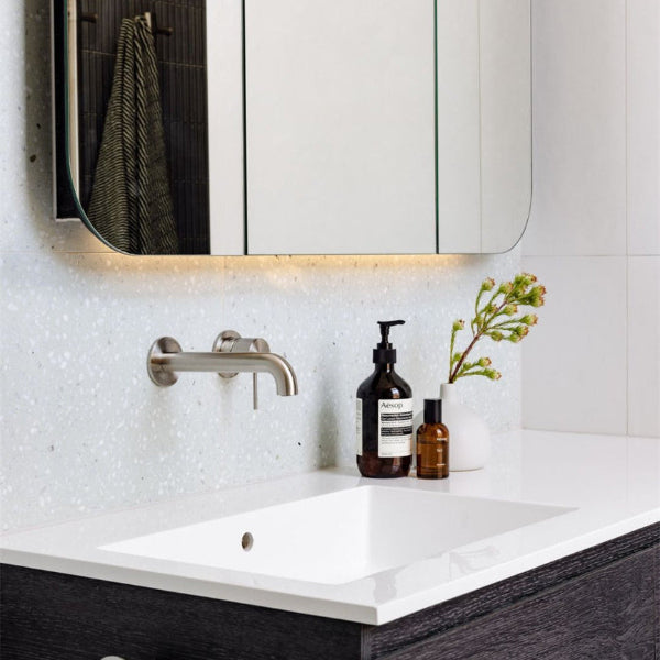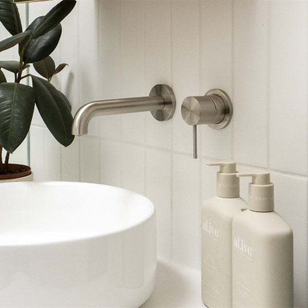 Nero Mecca NR221910C160BN Brushed Nickel Wall Basin Mixer Separate Back Plate 160mm Spout