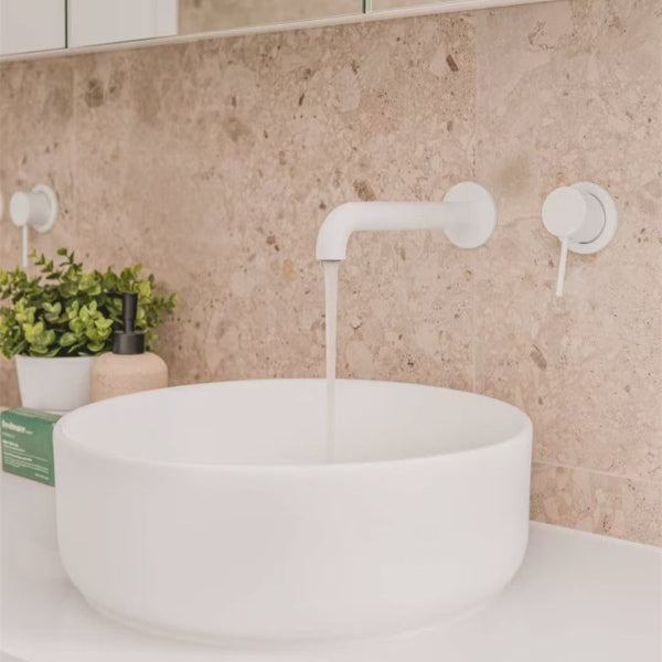 Nero Mecca NR221910C160MW Matte White Wall Basin Mixer Separate Back Plate 160mm Spout