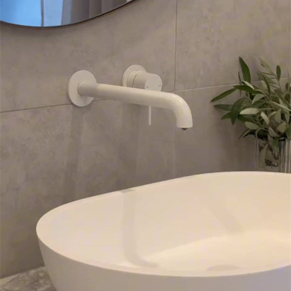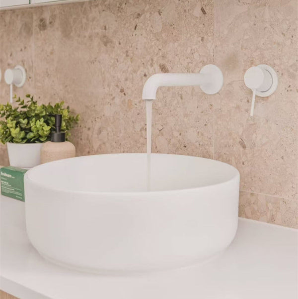 Nero Mecca NR221910C230MW Matte White Wall Basin Mixer Separate Back Plate 230mm Spout