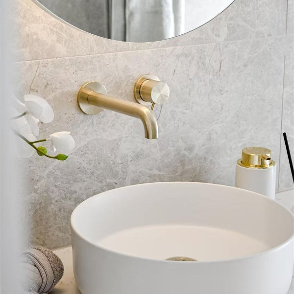 Nero Mecca Wall Basin/Bath Mixer Separate Back Plate 120mm Brushed Gold NR221910C120BG