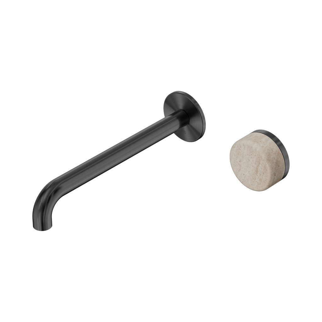 Nero Serenity Progressive Wall Basin Mixer 220mm Spout With Rome Travertine Handle Gun Metal