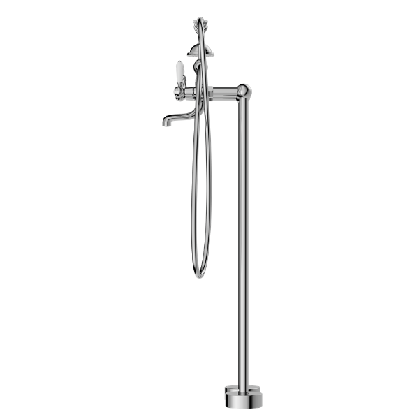 Nero York Freestanding Bath Set With White Porcelain Hand Shower Chrome NR692103a01CH