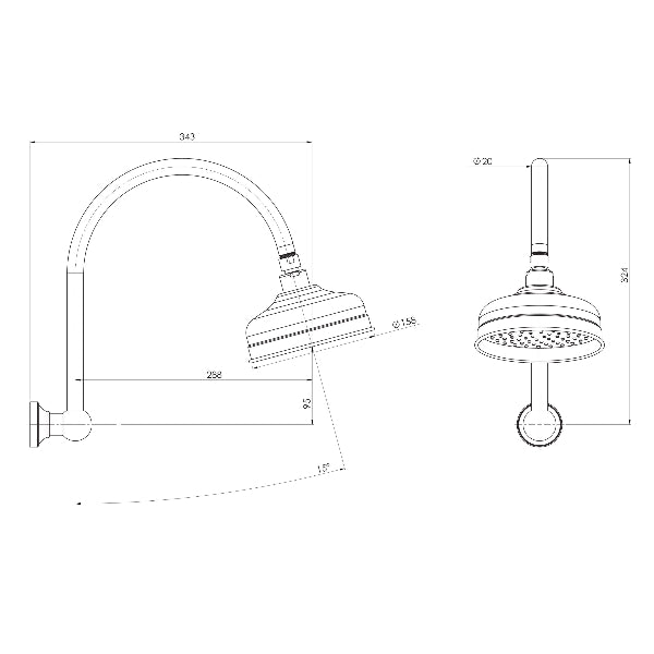 Phoenix Cromford 134-5300-00 High-Rise Shower Arm & Rose, Chrome 4 Star 7LPM