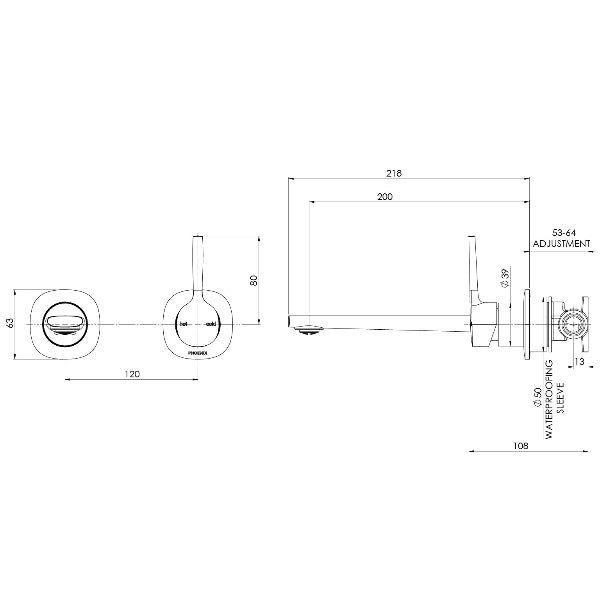 Phoenix Vask SwitchMix Wall Basin / Bath Mixer Set 200mm Pin Up, Brushed Nickel