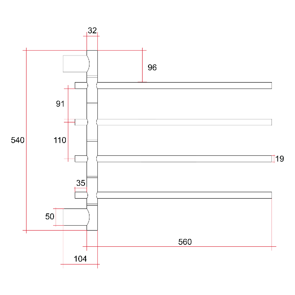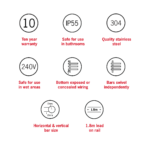 Thermorail Swivel Heated Towel Rail 595x540x104mm, Polished Stainless Steel