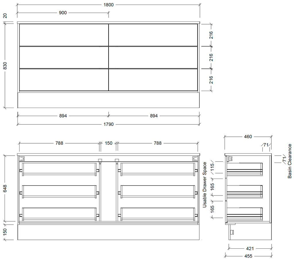 Timberline Emmett Floor Standing Vanity 1800mm with Centre Above Counter Bowl