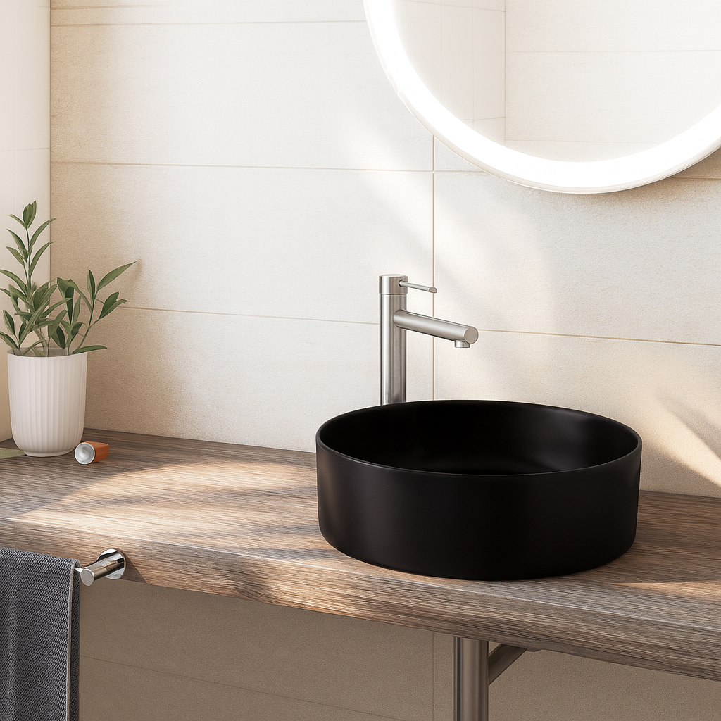 Venezia Round Countertop Vessel With Chrome Pop-down Waste – Graphite
