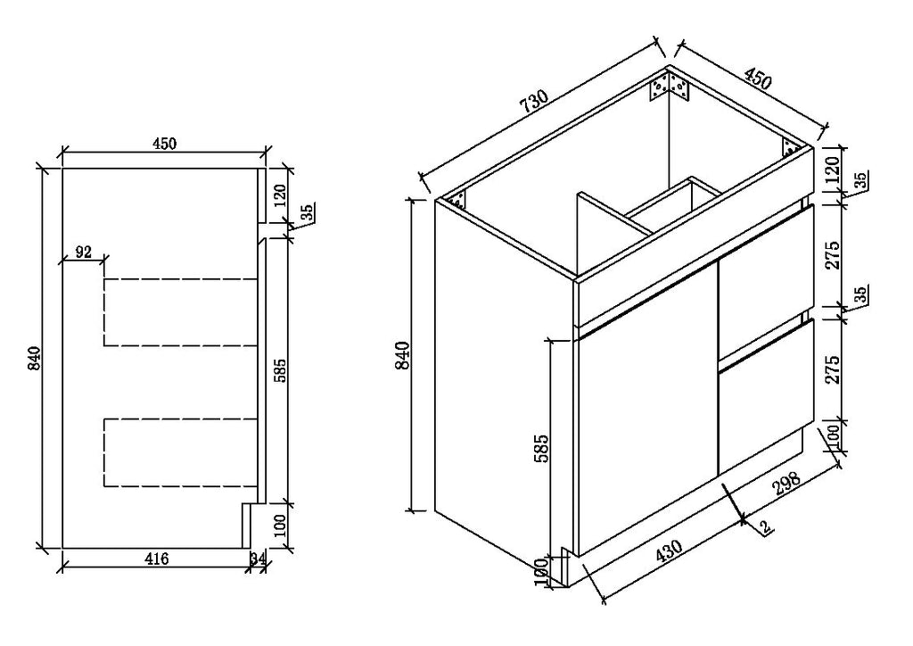 Thebe Gloss White 750mm Vanity Right Hand Drawer Cabinet Only