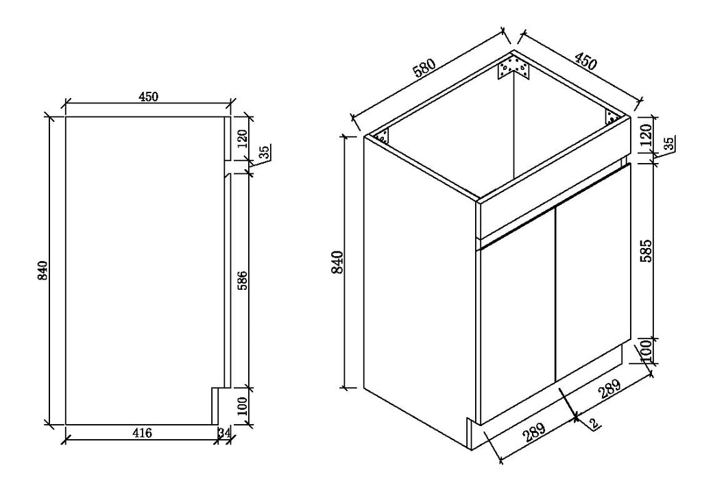 Thebe Soft Oak Vanity 600mm Cabinet Only
