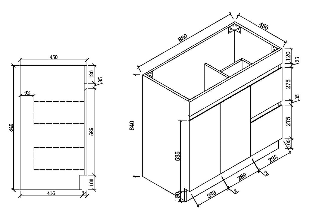 Thebe Soft Oak Vanity 900mm Right Hand Drawer Cabinet Only
