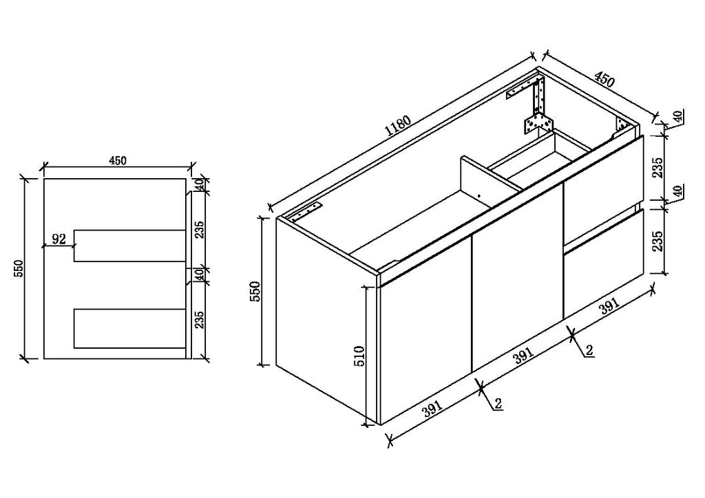 Thebe Wall Hung Soft Oak Vanity Cabinet Only